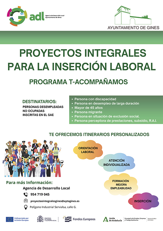 El Ayuntamiento de Gines, a través de la Agencia de Desarrollo Local, impulsa dos nuevos Proyectos Integrales para la Inserción...