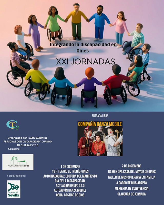 Las XXI Jornadas “Integrando la Discapacidad en Gines” lleganel lunes 1 y el martes 2 con diferentes propuestas para la inclusión