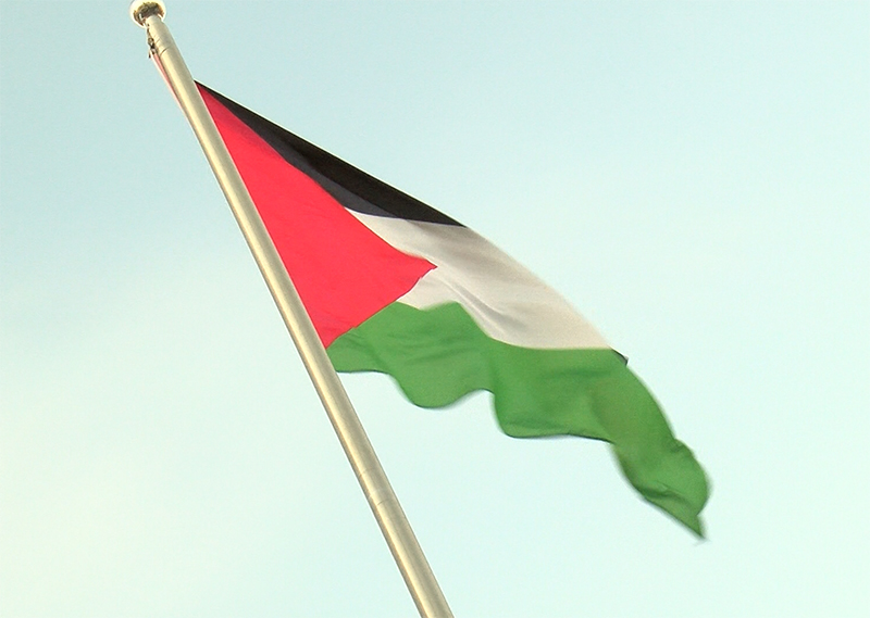 Gines iza la bandera de Palestina en defensa de los Derechos Humanos