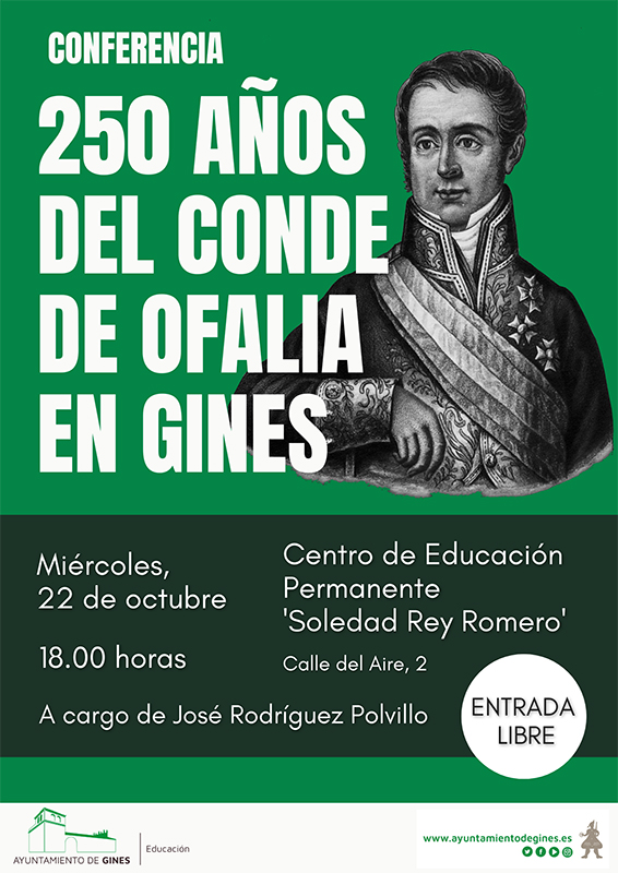 Bajo el título ‘250 años del Conde de Ofalia en Gines’, el Centro Municipal de Educación Permanente ‘Soledad Rey Romero’ acoge este miércoles, 22 de