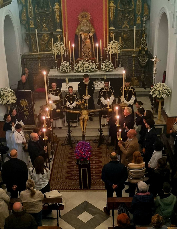 El Via Crucis al Santísimo Cristo de la Vera Cruz se celebró en el interior del templo debido a las previsiones meteorológicas