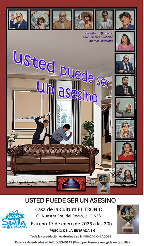 El Tronío de Gines acoge este sábado, 17 de enero, la comedia “Usted puede ser un asesino” con fines benéficos